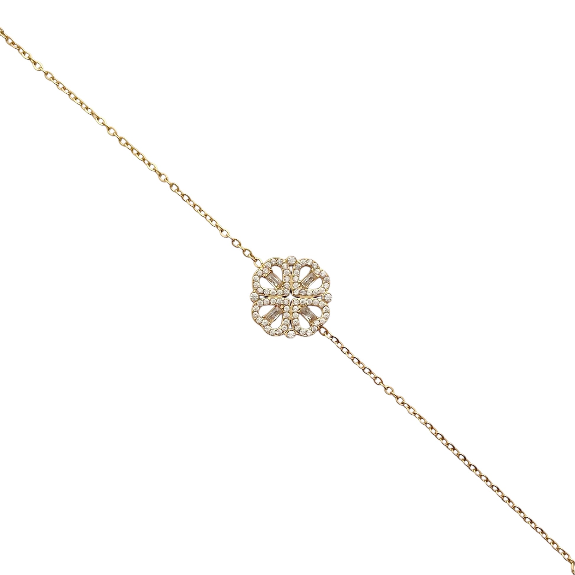 Bracelet trèfle scintillant en acier inoxydable doré