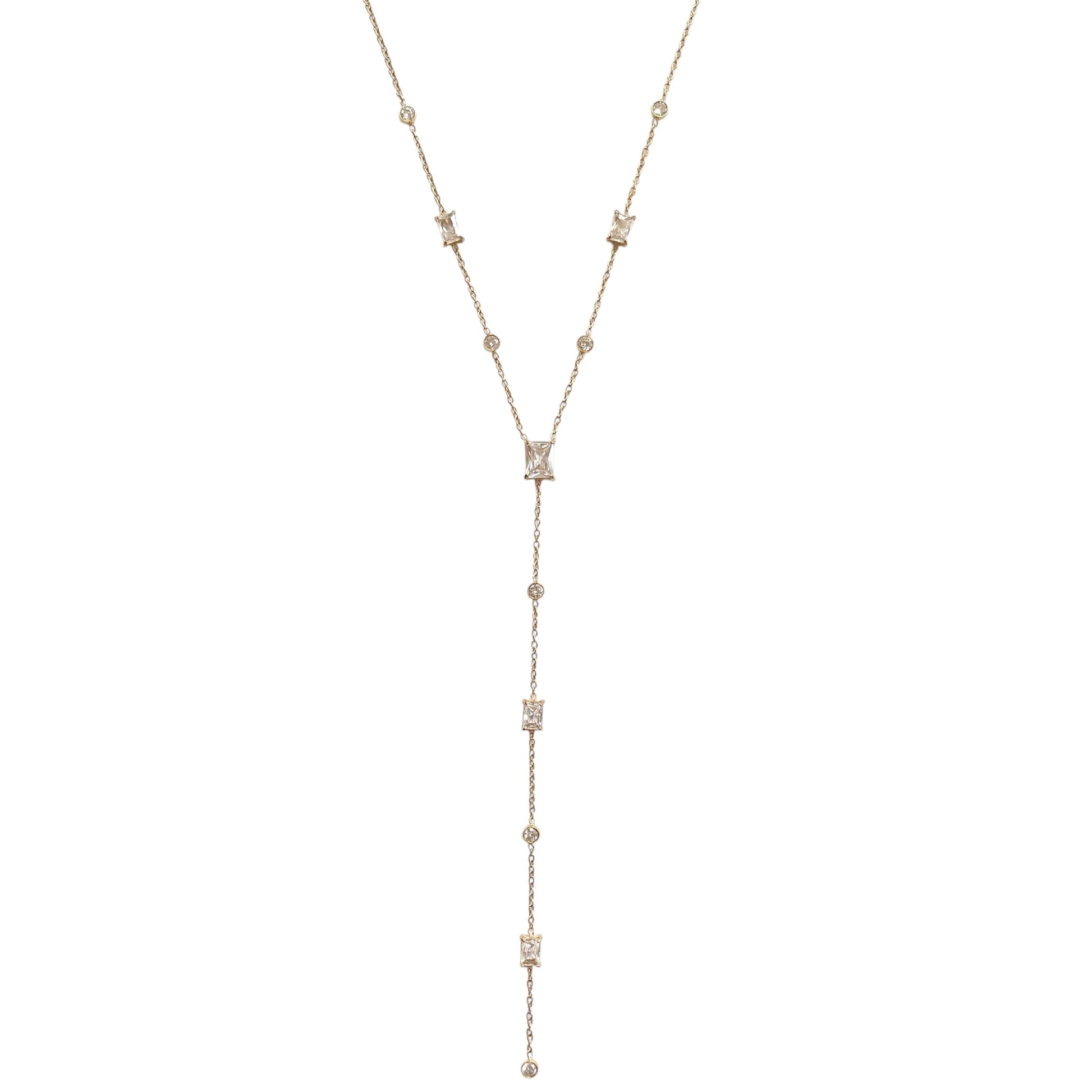 Collier Donatella en forme de Y, composé de zirconium rond et rectangulaire.