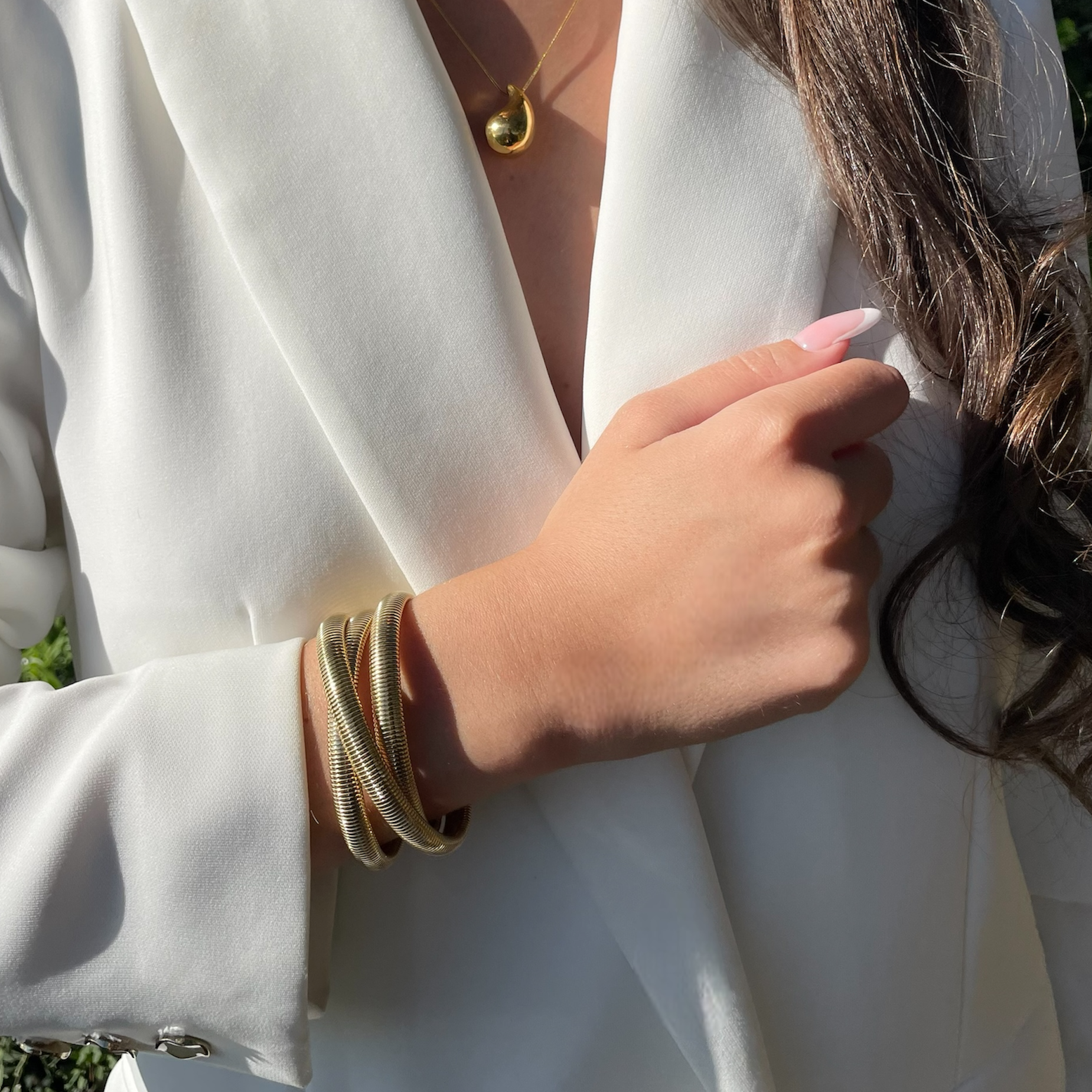 Un bijou doré tendance qui se porte seul pour un style épuré ou associé à d’autres bracelets pour un effet superposé chic.